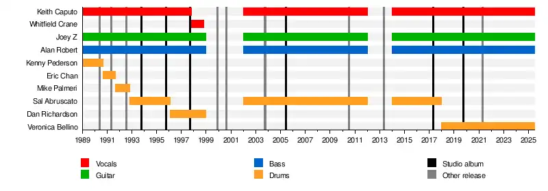 Life of Agony is an American alternative metal band from Brooklyn, New York City, formed in 1989 by singer Keith Caputo,[a] bassist Alan Robert and guitarist Joey Z. The band has released six studio albums to date, most notably their 1993 debut River Runs Red, named by Rolling Stone as one of the Greatest Metal Albums of All Time.[2]