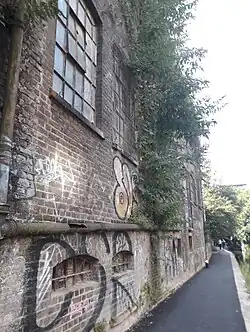 Bow Locks were originally semi-tidal, as high spring tides flowed over the top of the locks, altering the level in the Limehouse Cut and the southern section of the Lee Navigation. They were modified in 2000, when a flood wall and an extra pair of flood gates were installed, enabling the lock to be used at all states of the tide and stabilising the level of the cut.[70] Funding for the project was provided by the London Waterway Partnership.[71]