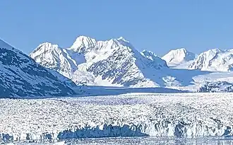 Lindita Peak is a 7,910-foot-elevation (2,411-meter) mountain summit located 17 miles (27 km) north-northwest of Valdez in the U.S. state of Alaska.[2][5] Lindita is the highest peak at the head of the Tazlina Glacier when viewed from the Glenn Highway at Mile 156 near the Tazlina Glacier Lodge.[6] This remote glaciated mountain is set in the Chugach Mountains on land managed by Chugach National Forest.[1] Precipitation runoff from the mountain drains south to Prince William Sound and north to Tazlina LakeTazlina RiverCopper River. Topographic relief is significant as the summit rises 2,400 feet (732 m) above the East Branch of the Columbia Glacier in 0.4 mile (0.64 km). The mountain's name Lindita, meaning "little beauty" in Spanish, was applied in 1955 by mountaineer and glaciologist Lawrence E. Nielsen (1917–1992), and the toponym was officially adopted in 1965 by the U.S. Board on Geographic Names.[4] The first ascent of the summit was made on July 1, 1977, by Lawrence E. Nielsen, Halford Joiner, Tom Lamb, and Dr. Randall Travis via the northeast face and the north-facing knife-edged ridge from the Tazlina Glacier.[6]