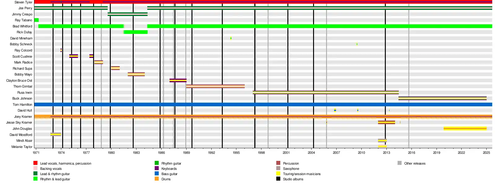 | | Ray Colcord | 1973–1974 (died 2016) | keyboards | Get Your Wings (1974) – three tracks only[18] |