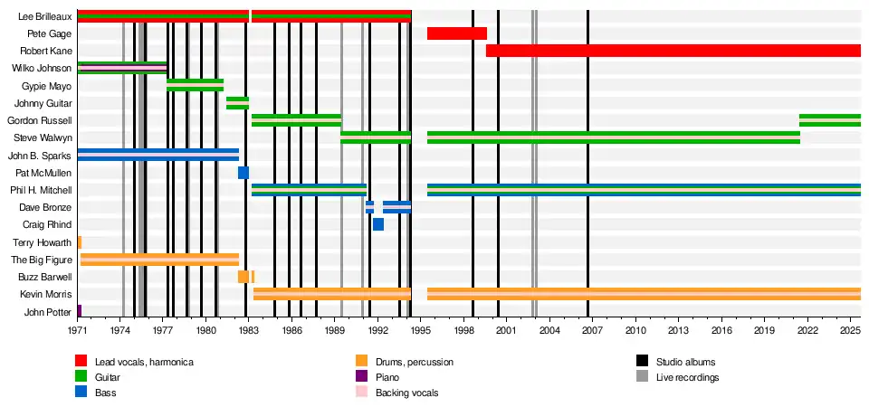 | Wilko Johnson (John Wilkinson) | 1971–1977 (died 2022) |