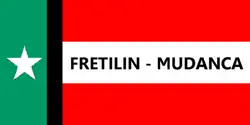| 2011 | Flag of Frenti-Mudança | Fretilin-Mudança is a split from Fretilin, which is also reflected in the design of the party flag. In August 2011, the party renamed itself Frenti-Mudança. The flag was also redesigned. Some versions of the new party flag lack the black stripes. Green represents the young generation of the country and the importance of nature and environmental protection, including respect for nature and traditional culture. The star shines through all people and paves the way forward for gender equality. Justice and equality for all people. The black commemorates the heroes who died in the struggle for independence. Yellow represents prosperity and economic independence for the people. Red represents courage to defend justice and fight injustice, crime, and corruption.[8] |