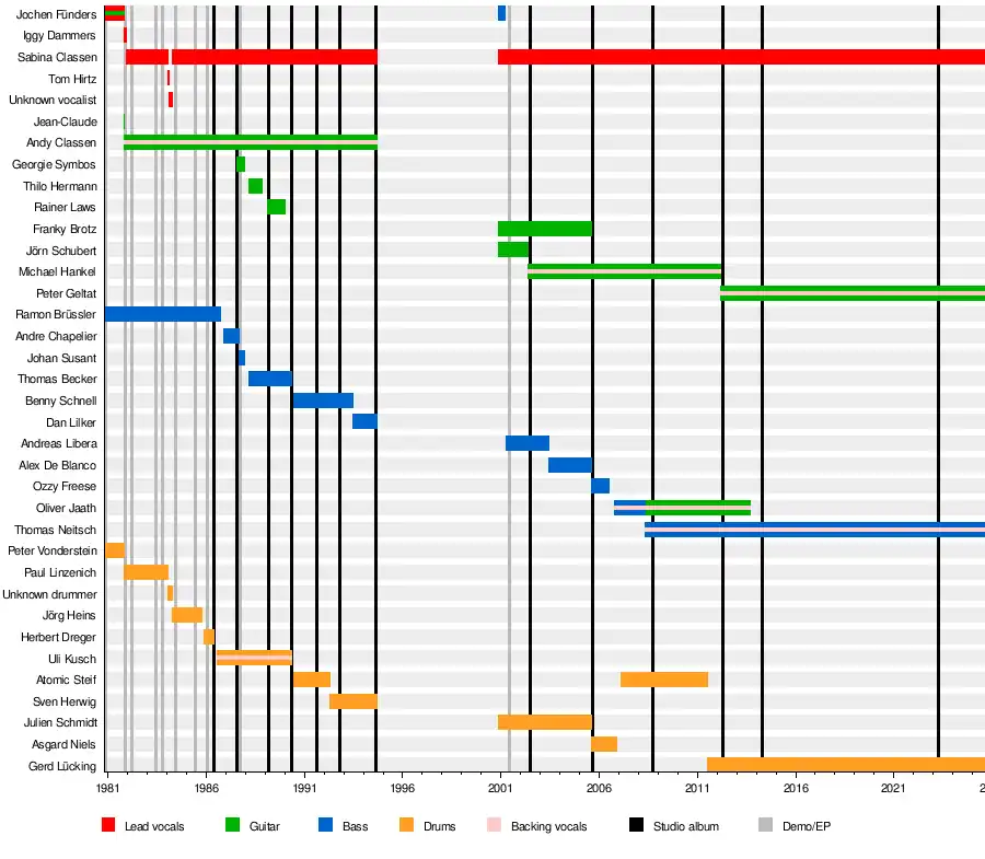 - ^ a b c "Der Anfang... ohne Sabina und Andy... von Holy Moses: 1986" (in German). Holy Moses. Archived from the original on 27 March 2005. Retrieved 5 December 2021.
