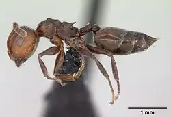Seventy-five ant species have been recorded in Andorra, a small landlocked country located in the heart of the Pyrenees and bordered by Spain and France. The country covers an area of approximately 468 km2 (181 sq mi).[1][2] The ant fauna of Andorra is mostly dominated by Central European species (some are typical cold climate specialists); however species belonging to the Mediterranean ant fauna are also found. This can be explained by the particular geographic situation of Andorra which is characterized by a high mountain Mediterranean climate.[3]