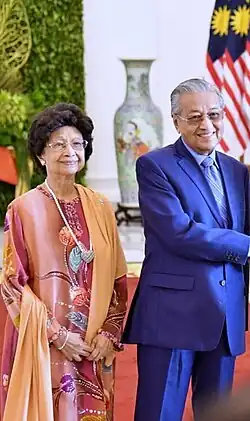 On 13 November 2018, Siti Hasmah was honored with the Distinguished Alumni Service Award by the National University of Singapore (NUS), which recognized her as a “global icon to pioneer and inspire women worldwide”.[29] At the same time, Singapore named an orchid hybrid, "Dendrobium Mahathir Siti Hasmah", in honor of Siti Hasmah and Mahathir's official visit.[30]