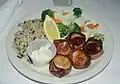 | Bacon-wrapped scallops | | Scallops wrapped with bacon and then cooked. | |