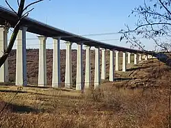 ![]() | 9 | Aciliu Viaduct | Viaductul Aciliu | Highest bridge in Romania Height : 80 m (260 ft) | 1,100 m (3,600 ft) | Beam bridge Composite steel/concrete deck | 2014 | Apoldu de Jos–Săliște 45°49′32.7″N 23°51′56.3″E / 45.825750°N 23.865639°E | Transylvania | [4] |