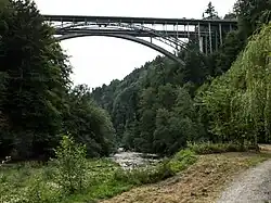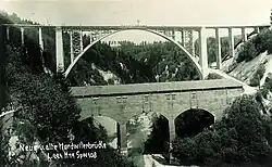 ![]() | 41 | Old Hundwil Gorge Bridge demolished in 1993 | 105 m (344 ft) | 221 m (725 ft) | Arch Concrete deck arch | Road bridge Urnäsch | 1925 | Hundwil 47°21′42.3″N 9°18′08.7″E / 47.361750°N 9.302417°E | Appenzell Ausserrhoden | [59] |