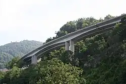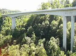 ![]() | 46 | Creugenat Viaduct | 104 m (341 ft) | 559 m (1,834 ft) | Box girder Prestressed concrete Twin bridges 59+96+104+96+69 | 2010 | Porrentruy 47°23′52.2″N 7°01′51.9″E / 47.397833°N 7.031083°E | Canton of Jura | [S 73] [65] | |