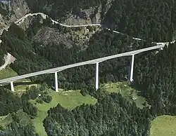 ![]() | 9 | Felsenau Viaduct | 144 m (472 ft) | 1,116 m (3,661 ft) | Box girder Prestressed concrete 94+144+144+94 | 1975 | Bern 46°58′09.9″N 7°26′52.2″E / 46.969417°N 7.447833°E | Bern | [S 40] [30] | |