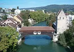| 14 | Baden Wooden Bridge | 39 m (128 ft) | Covered bridge Wood | Footbridge Limmat | 1810 | Baden 47°28′21.6″N 8°18′38.5″E / 47.472667°N 8.310694°E | Aargau | [T 11] | ||