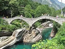 | 9 | Ponte dei Salti | Masonry 2 arches | Footbridge Verzasca | 17th century | Lavertezzo 46°15′11.4″N 8°50′34.2″E / 46.253167°N 8.842833°E | Ticino | [A 4] [S 7] | |||