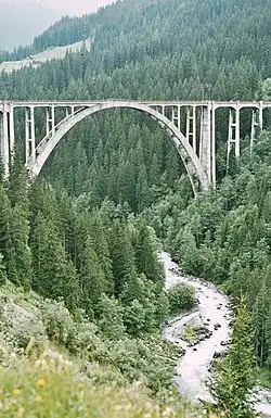 ![]() | 49 | Langwieser Viaduct | 100 m (330 ft) | 287 m (942 ft) | Arch Concrete deck arch | Chur–Arosa railway Plessur | 1914 | Langwies 46°49′03.4″N 9°42′18.4″E / 46.817611°N 9.705111°E | Grisons | [S 76] [68] |
