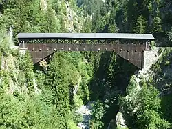 | 19 | Russein Bridge | Height : 45 m (148 ft) Span : 56 m (184 ft) | 61 m (200 ft) | Covered bridge Wood | Footbridge Russeinerbach | 1857 | Sumvitg 46°43′18.4″N 8°53′46.0″E / 46.721778°N 8.896111°E | Grisons | [A 8] [S 12] [T 14] | |