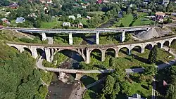 | _5.jpg) | _row_count | Vorokhta Viaduct closed | Віадук у Ворохті | Monument No. 26-110-0004 | 130 m (430 ft) | Masonry 12 arches | Railway bridge Prut | 1895 | Vorokhta 48°16′52.9″N 24°33′52.3″E / 48.281361°N 24.564528°E | Ivano-Frankivsk Oblast | [S 2] |