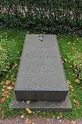 The organisers were faced with the problem that despite designating the cemetery to be the artists' necropolis, historically the Tikhvin had primarily been the burial ground of statesmen, military leaders, scientists, and composers.[4] There were relatively few graves of writers, who had tended to prefer the Smolensky Cemetery; or artists, who had traditionally chosen the Nikolskoe or Novodevichy Cemetery.[4] This necessitated the transfer of a large number of burials and monuments, which took place in two main periods, from 1936 to 1941 and from 1948 to 1952.[4] There were also several burials of prominent Soviet citizens, as the cemetery gained the status of an urban pantheon.[2] Those buried here included the scientist Sergey Lebedev in 1934, artist Mikhail Avilov in 1954, and actor Nikolay Cherkasov in 1966. In 1972 the remains of the composer Alexander Glazunov were transferred from Paris.[2] In 1968 Fyodor Dostoevsky's wife Anna Dostoevskaya was reburied next to her husband, while theatre director Georgy Tovstonogov was interred in the cemetery in 1989. So far Tovstonogov's has been the last burial to take place in the cemetery.[2][4]