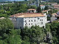 | Paz | Cerovlje, Istria County | Ruined castle | 13th century | Historical sources mention the feudal estate from the late 13th century, when it was ruled by members of the De Pas, Walderstein, Barbo and finally Auersperg families. Today, only scanty architectural remains of the fortress can be recognized on the ground. The tower is structurally and stylistically connected to the representative and harmoniously designed palace building, which also incorporated the older tower, and whose facades are articulated by regularly arranged large window openings with profiled skylights.[10] | |