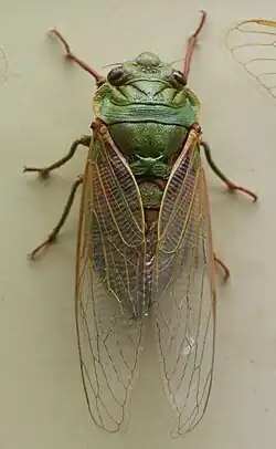 - ^ Marshall, David C.; Moulds, Max; Hill, Kathy B. R.; Price, Benjamin W.; et al. (2018). "A molecular phylogeny of the cicadas (Hemiptera: Cicadidae) with a review of tribe and subfamily classification". Zootaxa. 4424 (1). Magnolia Press: 1–64. doi:10.11646/zootaxa.4424.1.1. PMID 30313477.