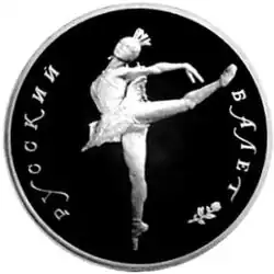 | 1991 | 5 rubles | Russian ballet | ballerina in the role of Odette | 9,000 | 999 | 7.87 | ![]() |