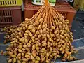 | Barḥi, Barḥee | Bahrain; India; Iran; Iraq; Israel; Kuwait; Palestine; Qatar; Saudi Arabia; Syria; Djibouti; Sudan | Arabic: برحي | Nearly spherical, light amber to dark brown when ripe; soft, with thick flesh and rich flavour. One of the few varieties that are good in the khalal stage when they are yellow (like a fresh grape, as opposed to dry, like a raisin). | |