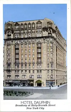 | Dauphin Hotel | 1929 | 1958 | west block front of Broadway between 66th Street and 67th Street | ||