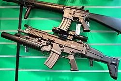 | FN FNC M3 | Assault rifle | 5.56×45mm NATO | Standard-issue service rifle of the Belgian Land Component. In the process of replacement by the FN SCAR | ||