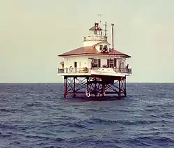 | Holland Island Bar Light | | Holland Island | 38°04′07″N 76°05′45″W / 38.0687°N 76.0959°W / 38.0687; -76.0959 | 1889 | Never | 1960 (Demolished) | None | 042 42 ft (13 m)[4] |