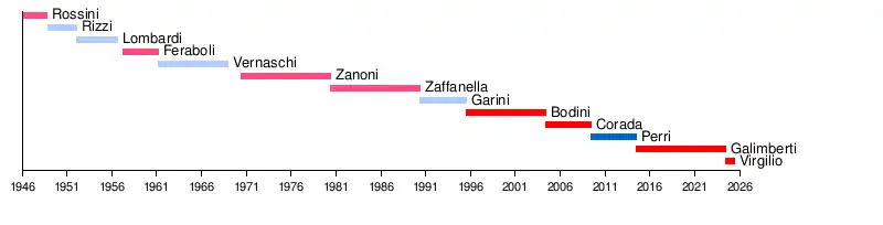 | 1 | Gino Rossini | 1946 | 1948 | PSI |