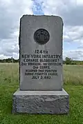 | Colonel Augustus van Horne Ellis Statue 124th New York Infantry Monument | | Houck's Ridge, Sickles Avenue 39°47′33″N 77°14′32″W / 39.792376°N 77.242274°W | Maurice J. Power P. B. Laird | 1884 | MN 129 | Colonel Ellis was killed in the battle. |