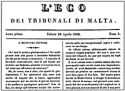 | L'Eco dei Tribunali di Malta | Italian | 1843 | pre-1899[5] | [4]: 12 | ||