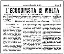 | L'Economista di Malta | Italian | 1876 | Business[4] | | ||