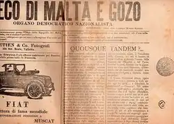| L'Eco di Malta e Gozo | Italian | 1920s | Enrico Mizzi[4]: 22 | | ||