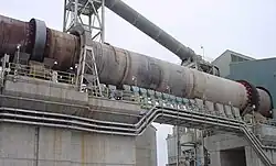 | Rotary kiln | | A pyroprocessing device used to raise materials to a high temperature (calcination) in a continuous process |