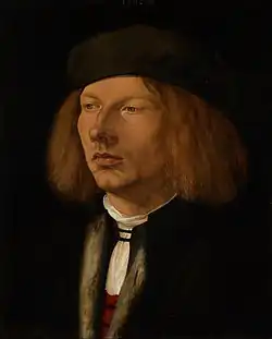 - ^ Attributed by Kemperdick to Dürer's father as a self-portrait on the basis of circumstantial arguments and great stylistic similarities to his self-portrait drawing that could have then functioned as a preparatory drawing. In addition, its differences in style to the Portrait of Barbara Dürer cannot be entirely explained by slightly different dates. Stephan Kemperdick (2013), ""Nach mir selbs kunterfet". Bildnisse und Selbstbildnisse", in Jochen Sander (ed.), Dürer. Kunst – Künstler – Kontext, Exhibition catalogue Städel, Frankfurt (in German), München: Prestel, pp. 93–99, ISBN 978-3-7913-5318-0.
