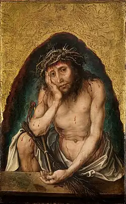 ![]() | Christ as the Man of Sorrows back side: "Agate cut or Lightvision"[8] | c. 1493 — | Oil, tempera and gilding on panel (pinewood) | 30 × 19 | Karlsruhe, Staatliche Kunsthalle[9] (2183) | 9 ∅ |