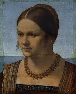 ![]() | Portrait of a Young Venetian Woman | 1506/07 m | Oil on panel (poplar) | 28.5 × 21.5 | Berlin, Gemäldegalerie (557G) | 95 |