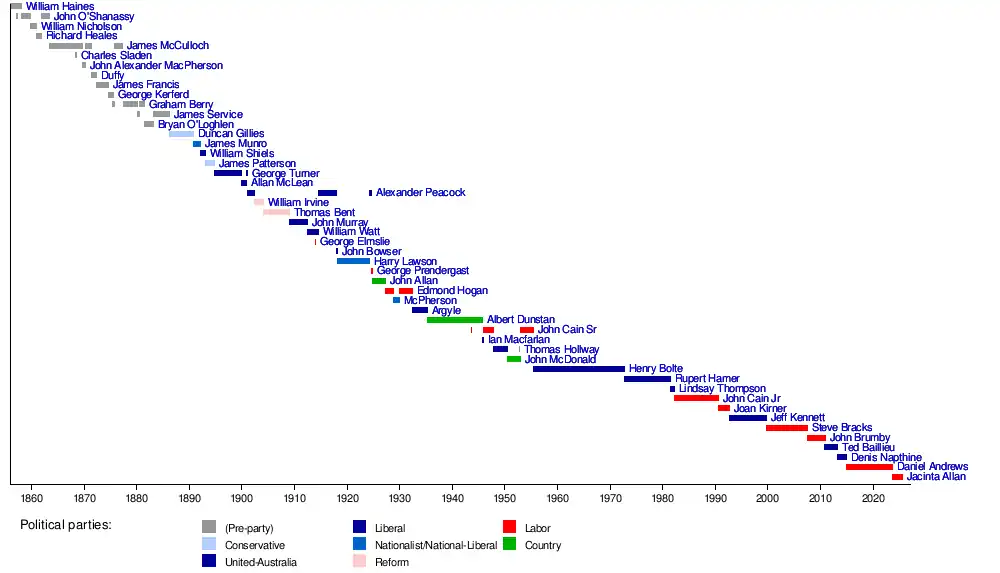 - ^ "Parliament of Victoria – Premier of Victoria". www.parliament.vic.gov.au. Archived from the original on 25 November 2018. Retrieved 25 November 2018.