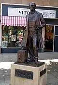 More images | Thomas Cook | London Road, Leicester 52°37′51″N 1°07′31″W / 52.630884°N 1.125286°W | 1994 | James Walter Butler | Statue | Bronze | h 180 centimetres (71 inches); w 84 centimetres (33 inches); d 79 centimetres (31 inches) | Leicester City Council | [1]