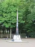 | Buttercross Needle | Marriotts Walk, Witney 51°47′17″N 1°29′12″W / 51.78793°N 1.48672°W | 2019 | Michael Fairfax | Obelisk | stainless steel, glass & fibre optic lights | West Oxfordshire District Council | A contemporary narrow pyramidal obelisk on a geometric steel base. At night, fibre optic lights illuminate it through thin glass strips. It reflects the spire of nearby St Mary's Church and the roof of the Buttercross.[12]
