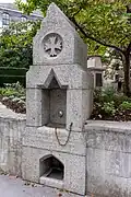More images | St Lawrence and Mary Magdalene Drinking Fountain | Carter Lane Gardens 51°30′46″N 0°05′51″W / 51.5129°N 0.0974°W | 1866 | Joseph Durham | John Robinson | Drinking fountain with sculpture | Grade II | [57] |