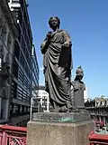 ![]() More images | Memorial to John Heminges and Henry Condell | Former churchyard of St Mary Aldermanbury 51°30′59″N 0°05′35″W / 51.5164°N 0.0931°W | 1895–1896 | C. J. Allen | Charles Clement Walker | Memorial with bust | Grade II | Inaugurated 15 July 1896. Incorporates a bronze bust of William Shakespeare. Heminges and Condell, the compilers of Shakespeare's First Folio, were both buried in the parish.[19] |
