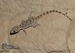 Keeled rock gecko | Cyrtopodion scabrum | 10 cm (3.9 in) | Least concern | ![]() | Prefers to hide out in uninhabited towns and buildings during the day. | ![]() |