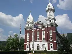 | Elk County Courthouse | | Elk | Ridgway | 1879 | J.H. Marston | Second Empire | The courthouse is red brick with sandstone. The tower originally supported a statue of Justice, which was destroyed by lightning in the 1930s. The interior was modernized in about 1969. | [50][51] |