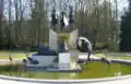 The youngest is a bust of bronze, posited on a stone pier, crafted by Victor Demanet and erected on 7 February 1951.[35] The pier contains the text "AU ROI / LEOPOLD II / LES VETERANS / DE L'ETAT / INDEPENDANT / DU CONGO. DON / A LA FRANCE ("To King Leopold II. The veterans of the Independent State of the Congo. Given to France.").[35] The Association of Veterans of the Independent State of Congo, founded on 25 October 1928, gifted this monument to France in 1951 to honour Leopold II for their military service in the Congo Free State.[35]