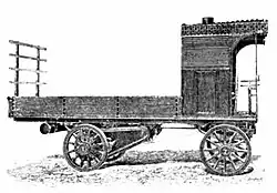 | Cugnot | France | 1769 | ![]() Nicolas-Joseph Cugnot's "machine à feu pour le transport de wagons et surtout de l'artillerie" ("fire engine for transporting wagons and especially artillery") was built in two versions, one in 1769 and one in 1771 for use by the French Army.[5] |