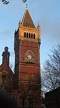 55= | Church of St Mary | ![]() | 74 (241) | N/A | 1858 | Place of worship | Hulme, Manchester | The Church of Saint Mary in the southern suburb of Hulme was the tallest building in the city of Manchester when it was completed in 1858 for six years until the Manchester Assize Courts were constructed in 1864.[87] |