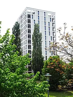 | 3. | ![]() more pictures | Wintergartenhochhaus,[13][14] | next to Hauptbahnhof | Apartments | 1972 | 95.5 metres (313 ft) | 32 | Collective led by Frieder Gebhardt[15] |