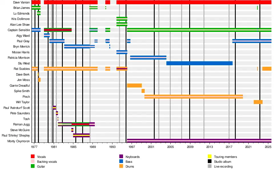 | Dave Vanian (David Lett) | 1976–present | lead vocals | all the Damned releases | |
