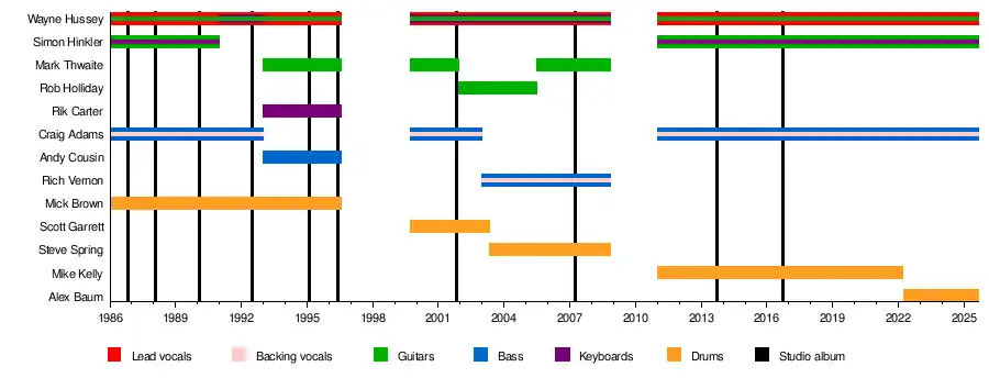 Hussey reformed the band in 1999, with Adams and Thwaite returning alongside new drummer Scott Garrett.[5] Thwaite was replaced by Rob Holliday in 2001.[6] Richard Vernon replaced Adams in 2002.[7][8] Garrett was replace by Steve Spring in late 2003.[9] Thwaite returned in 2005.[10] The band disbanded again in 2008.[11]