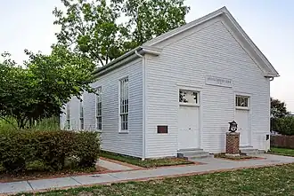 | Antioch Christian Church | | Kansas City, Missouri | ca. 1859 | Church | The oldest church in Kansas City, Missouri. Built for the Antioch Christian Church which was organized in 1853. It was later restored in 1968 and moved by the congregation which uses it for special events today.[14] It is listed on the National Register of Historic Places and is a Kansas City Landmark. |